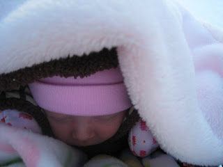 It was finally above zero this week, so we decided to try going outside! Kylie was all bundled up and stayed nice and warm...Jaxon had fun building a mini snowman and sledding down the hill in our backyard!
